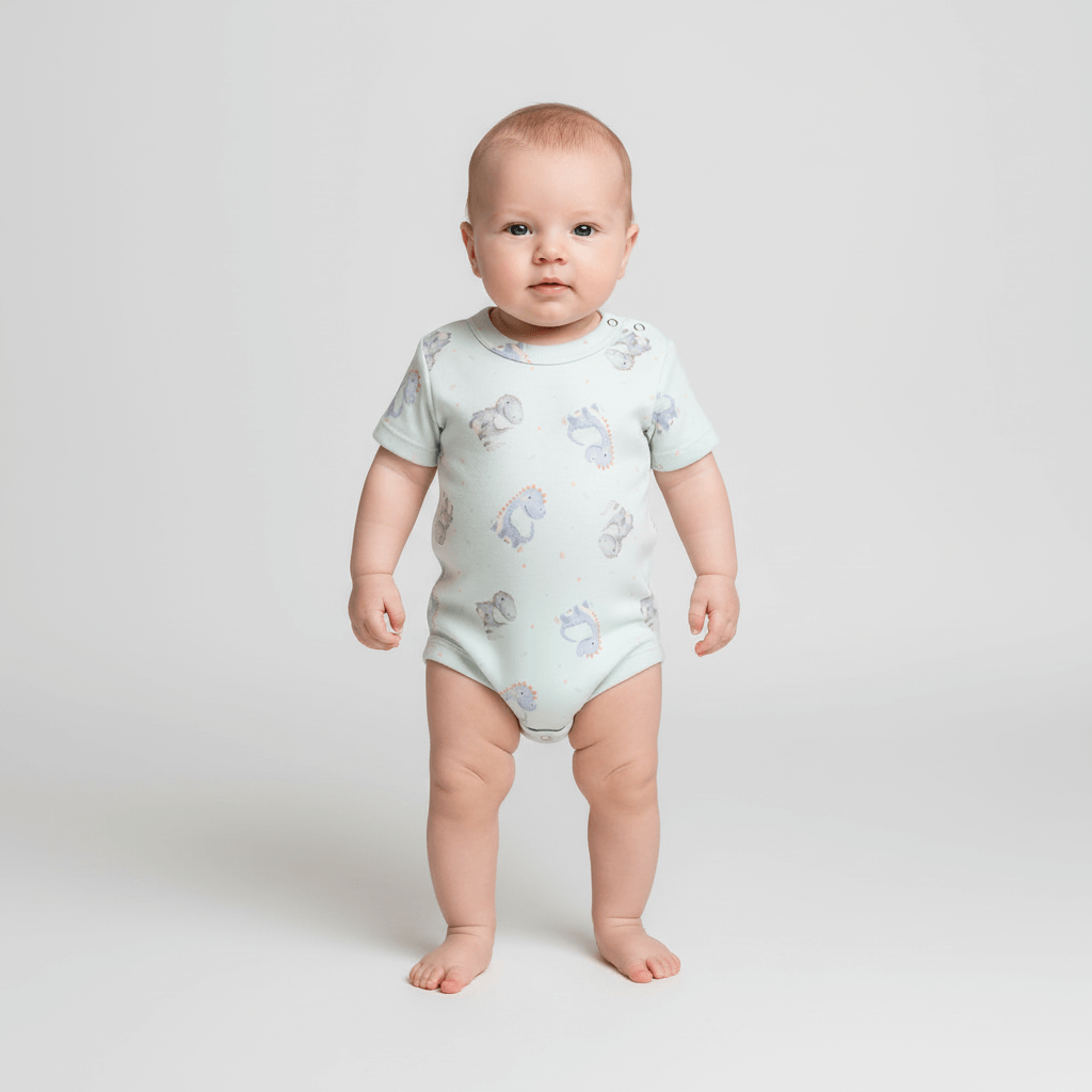 Su corte clásico y adaptable acompaña cada movimiento del bebé, garantizando libertad, frescura y el contacto de una tela hipoalergénica, ideal para pieles sensibles.