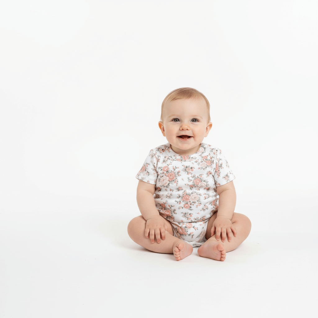Su corte clásico y adaptable acompaña cada movimiento del bebé, garantizando libertad, frescura y el contacto de una tela hipoalergénica, ideal para pieles sensibles.